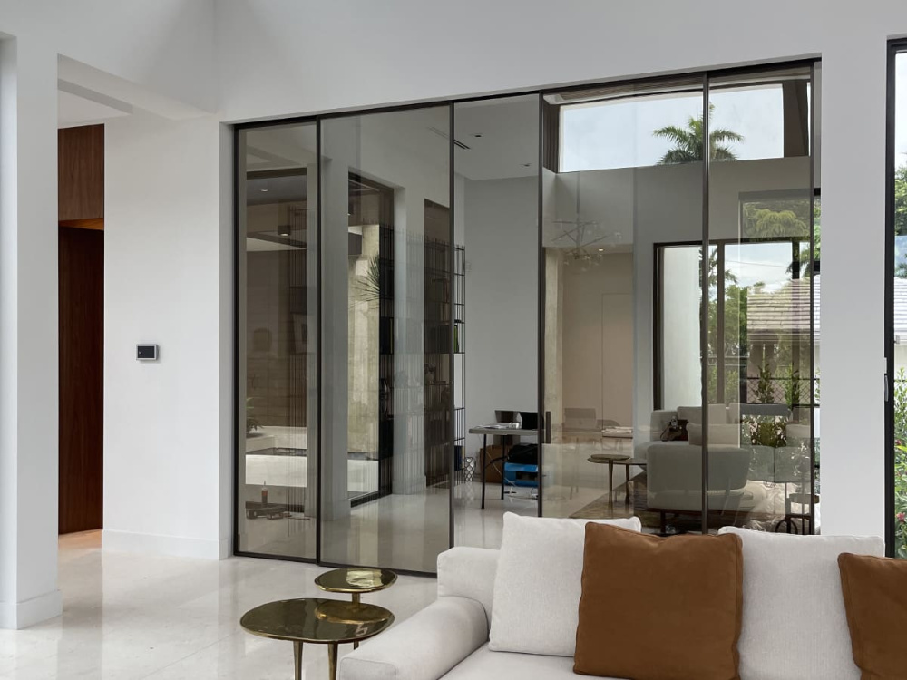 Modern sliding doors with clean lines and minimal hardware feel intentional rather than temporary, making them suitable even for living spaces.
