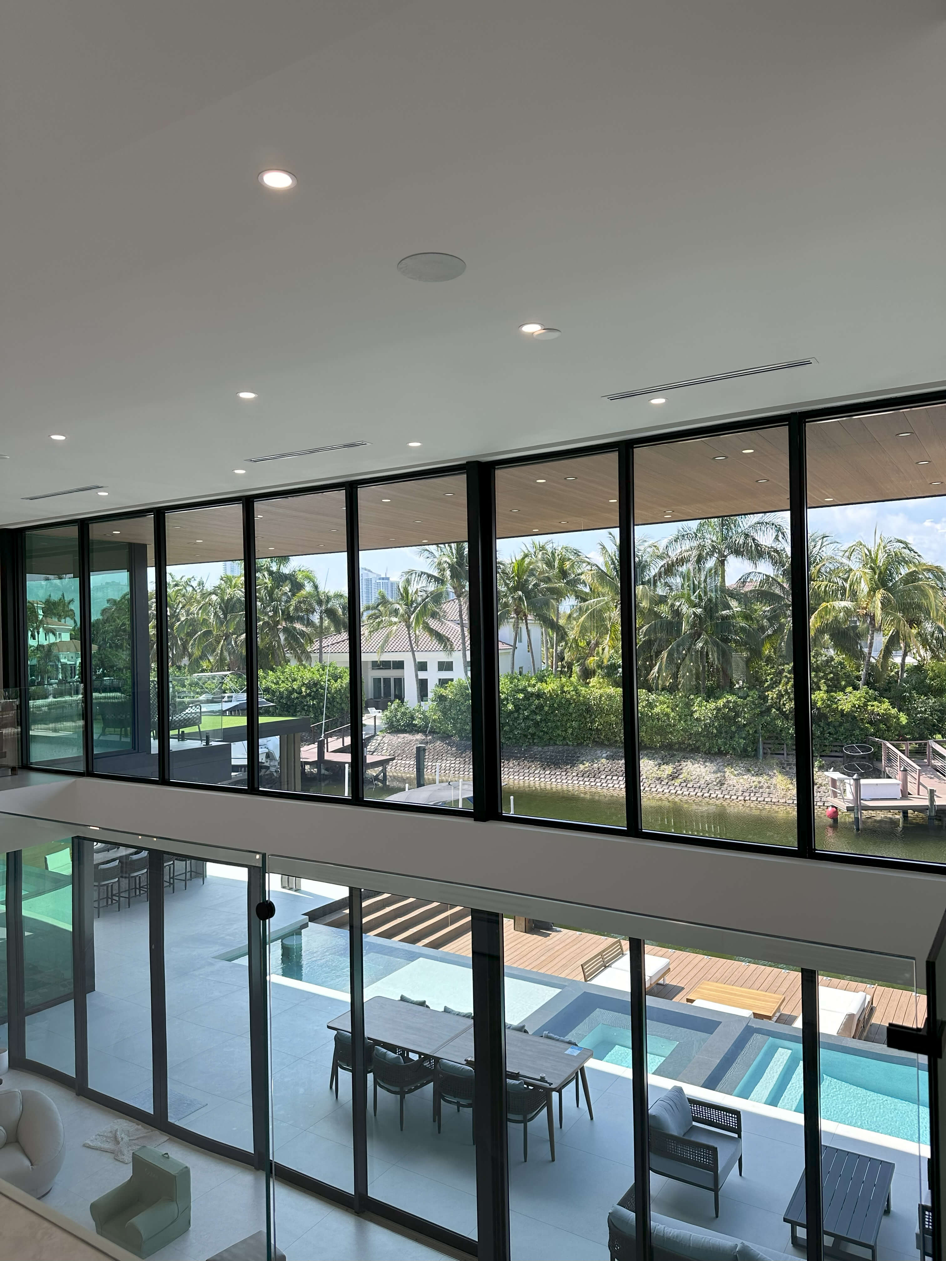 Built in Europe with precision and attention to detail, these frameless white enamel doors embody a balance of aesthetics and functionality, making them ideal for luxury homes in South Florida.