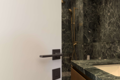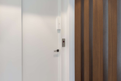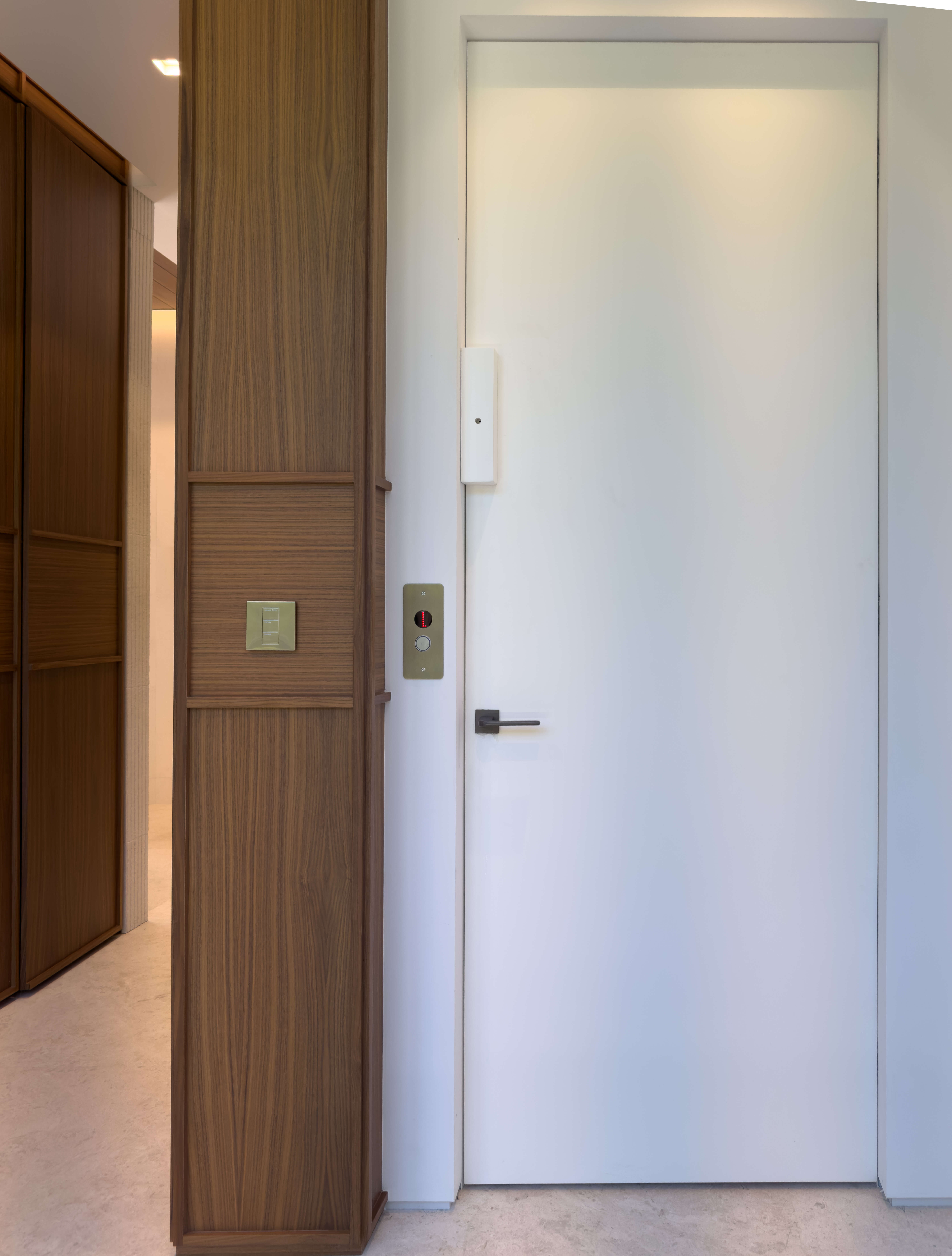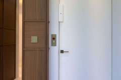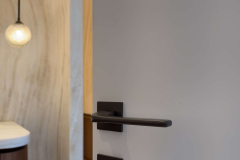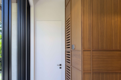 The project also includes ventilated AC doors, engineered with discreet panels that allow airflow between rooms without interrupting the design continuity. For the master suite, a double door entrance provides both elegance and functionality, creating a strong architectural presence.