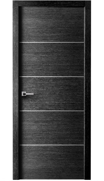 One of the distinctive features of the Versa Interior Door is its recessed real aluminum strips, which enhance its modern aesthetic and provide a striking visual contrast against the Black Apricot veneer. This design detail ensures the door blends seamlessly into contemporary interiors, elevating the overall ambiance of any room.